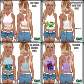 FIFTEEN sexy.cute.fun new racer back "perky'ish" tanks are on the first wall to the right of the entrance and there is one FREE white logo tank mixed in with them :)